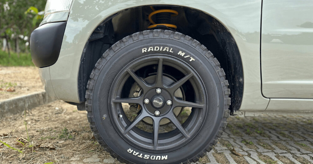 マッドテレーンタイヤ、オーバーフェンダーで本格オフロード感を演出。